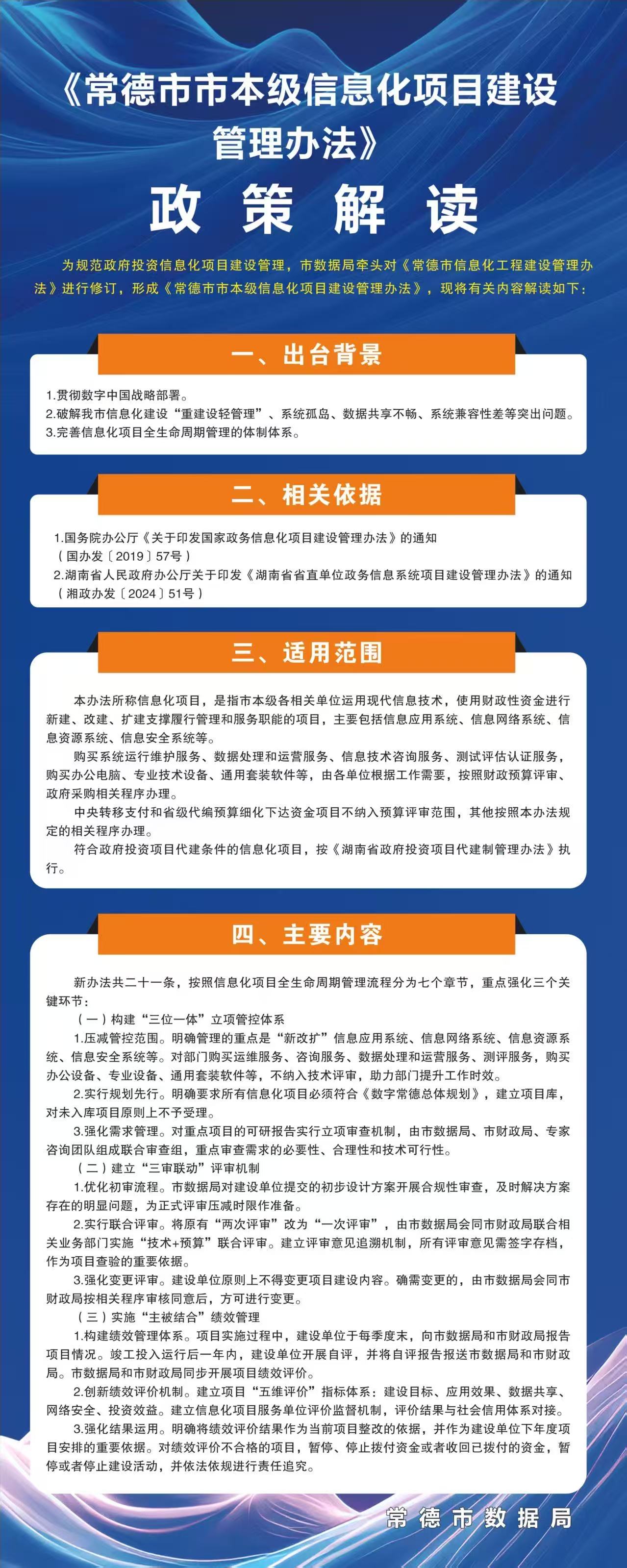 图文解读:常德市数据局等四部门关于印发《常德市市本级信息化项目建设管理办法》的通知